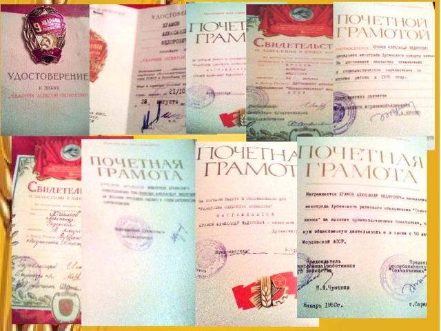 За успехи в сельском хозяйстве, за добросовестный труд папа был награжден грамотами и благодарностями.