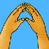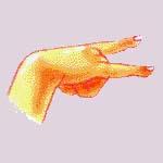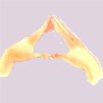Скрестить запястья обеих рук и прижать ладони тыльной стороной друг к другу. Пальцы прямые. «Бабочка сидит». Имитировать полёт «бабочки».