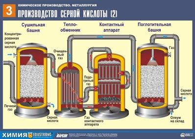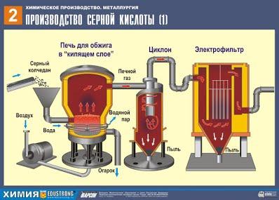 Химизм производства: Используя плакат «Производства серной кислоты» рассмотреть все стадии получения кислоты: