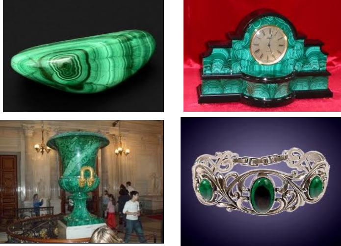 Бұл минерал Оралда, Алтайда, Қазақстан жерлерінде кездеседі. Малахиттан вазалар, сағаттар, зергерлік бұйымдар жасайды. Санкт-Петербургтағы Эрмитажда малахиттан жасалған үлкен вазаны көруге болады.