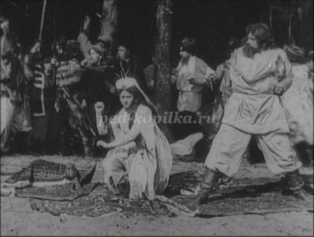 Ведущий 2. В России премьера первого фильма состоялась 15 октября 1908 года. Это была лента «Понизовая вольница» режиссера Владимира Ромашкова по мотивам народной песни о Стеньке Разине «Из-за острова на стрежень». Длился первый российский фильм всего 7 минут.