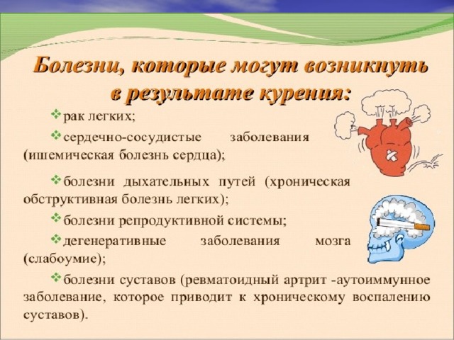 - Живут курящие на 10 – 12 лет меньше своих сверстников;