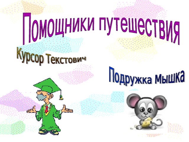 1. Как правило, она содержит от 101 до 104 клавиш. 2. Самая главная микросхема, мозг компьютера. 3. Специальное устройство для управления курсором, манипулятор.