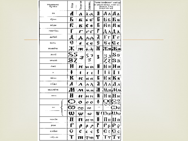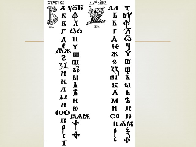 - В презентации предложен наглядный материал, дающий представление о создателях славянского алфавита, о князе Владимире, об изменениях в алфавите на протяжении веков, фотографии рукописных книг.