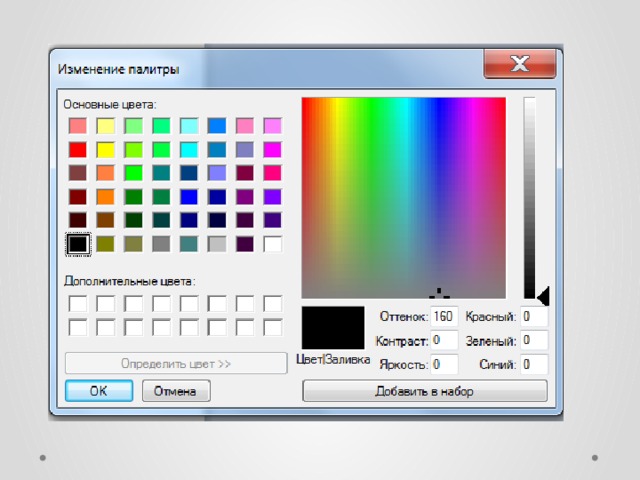 Палитра цветов – набор цветов, в которые могут быть окрашены точки изображения.