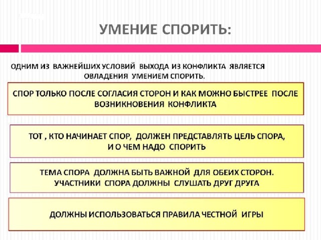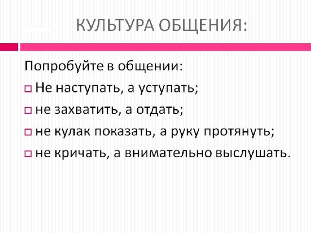 Сформировать представление о культуре общения как одной из условий преодоления конфлектных ситуаций