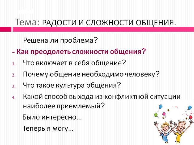 - Проблема : как преодолеть сложности общения?
