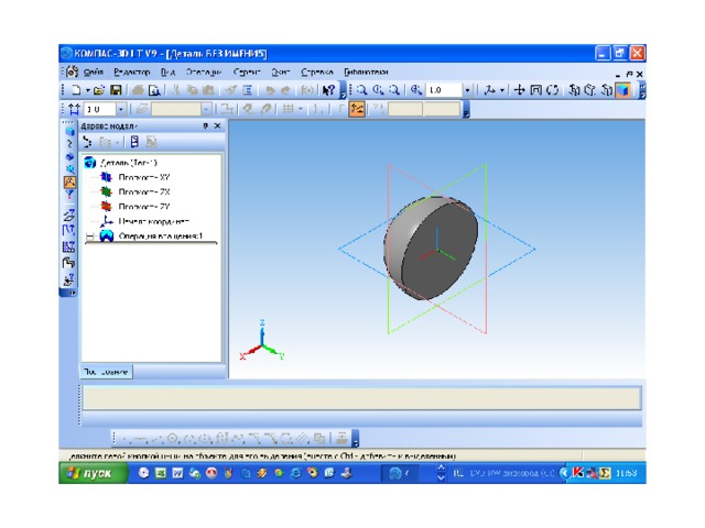В презентации показан алгоритм операции вращения в Компас 3D LT V9.