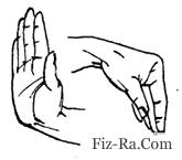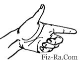 Выпрямить пальцы, большой отвести в сторону и выполнить им круговые движения сначала вправо, а затем влево.