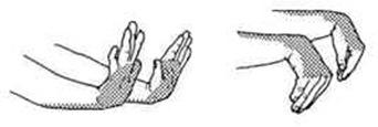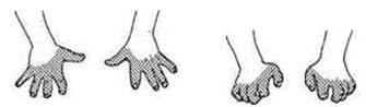 Мышцы ладони напряжены, пальцы полусогнуты.