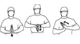 Пальцы сжаты в кулак. Большой палец всегда прижат к ладони. Остальные пальцы поочередно разгибают на каждое слово. Затем снова возвращаются в исходное положение. Имитируется движение «дернули».