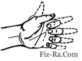 Захватив правой рукой кончики пальцев левой руки, медленно потянуть их. Сменить руки.