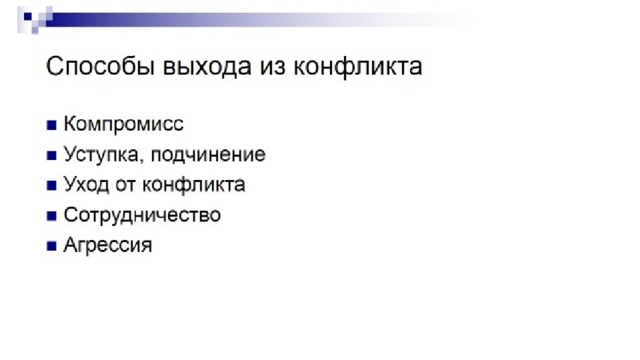 - 1. Прежде, чем вступить в конфликтную ситуацию, подумайте над тем, какой результат вы хотите получить.