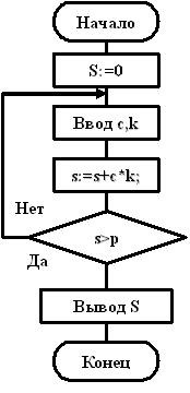 Начальное значение (s) = 0, значение предельной суммы (р) – вводится с клавиатуры. Необходимо повторять запрос цены и количества выбранного товара, вычислять его стоимость и выводить результат на экран до тех пор, пока она не превысит предельную сумму, в этом случае на экран нужно вывести сообщение о превышении.