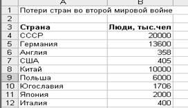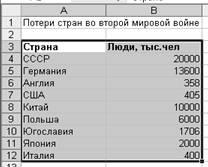 • Ввести табличные данные на листе.