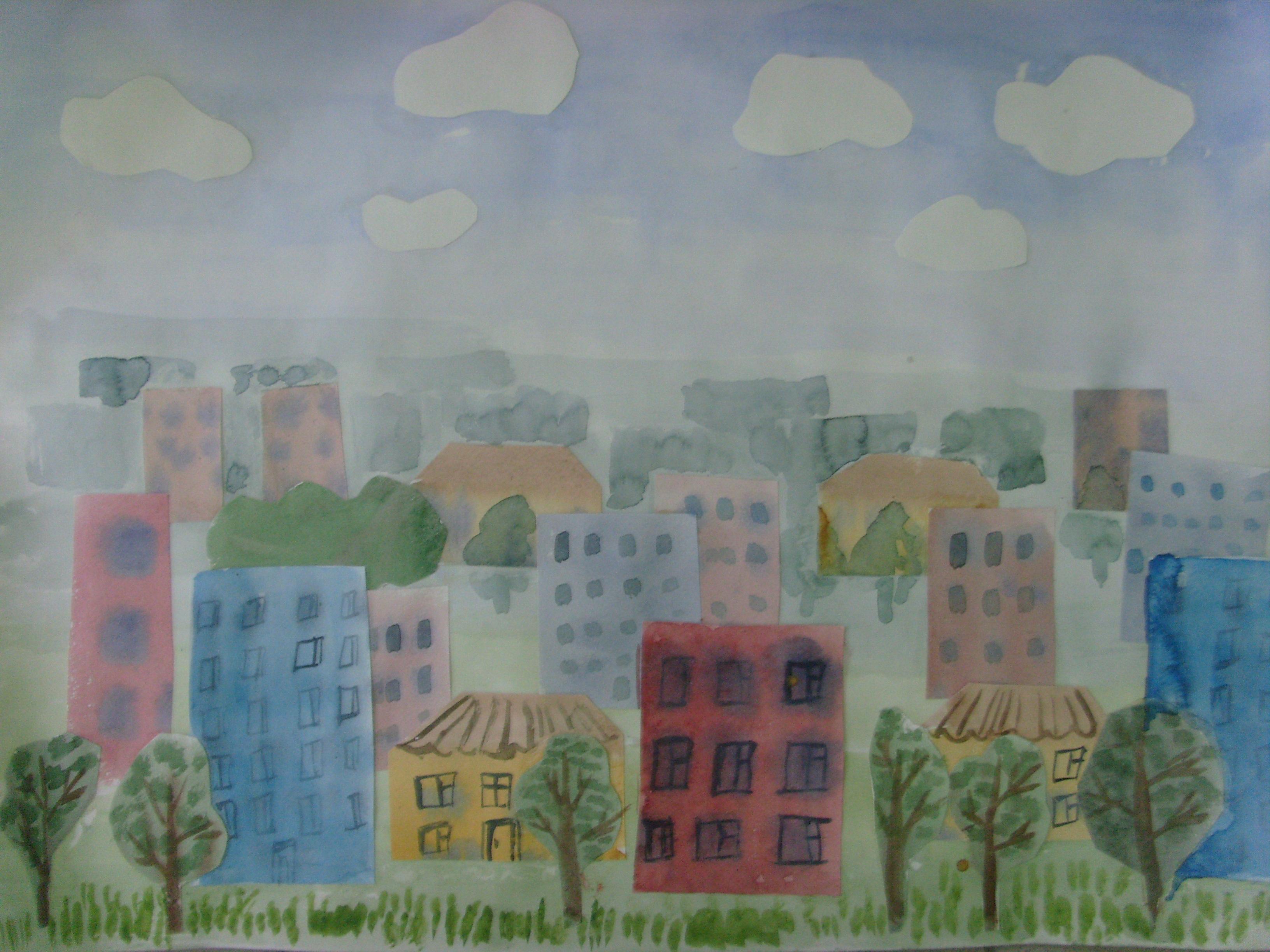 | Практическая работа. 15-20 мин. | Сегодня на уроке вам предстоит коллективная работа. Давайте поделимся на три группы: первая группа будет на листе ватмана изображать небо и землю, вторая группа – деревья и кустики, третья – дома. Так как тема нашего урока «Наш город», то за основу рисунка возьмем здания нашего города. Работу нужно начать с определения высоты горизонта: это будет зависеть от того, какой вы хотите показать город – панорамным или величественным. Во время работы нужно не забывать о линейной и воздушной перспективе: как изменяются небо и земля, деревья и здания по мере удаления от нас. Результат работы будет полностью зависеть от совместной работы над рисунком, нужно советоваться со своими товарищами как и где именно вы будете располагать предметы, какими они должны бать по размеру. | Выполняют практическое задание. |