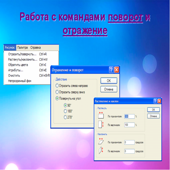 Научить учащихся выполнять операции «Отражение и поворот изображения»