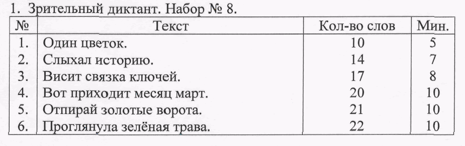 Ребенок слушает текст, потом сам читает 1 минуту.( 2-3 раза пока идет прирост).