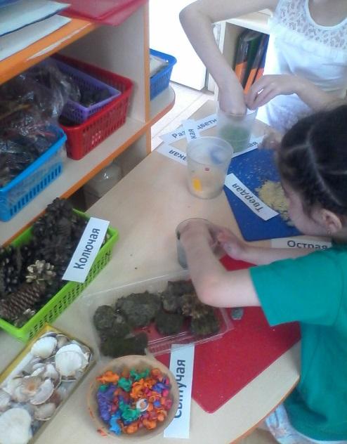 | В центре природы Ребята! Нужно каждый грунт исследовать на дощечке для лепки. И выяснить, какой грунт колючий, гладкий, твердый, сыпучий, ломкий, слизкий, мягкий, разноцветный и т.д. Разложить надписи на емкости.
