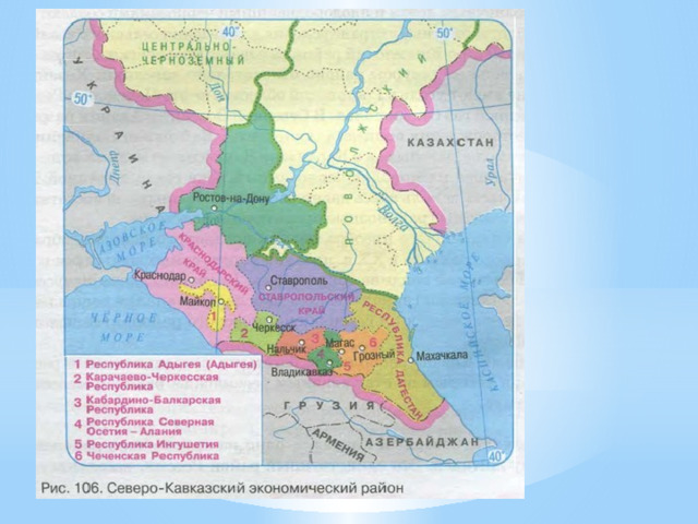 Нефтеперерабатывающие предприятия построены в Майкопе, Краснодаре, Туапсе, Грозном . Они работают на собственном сырье