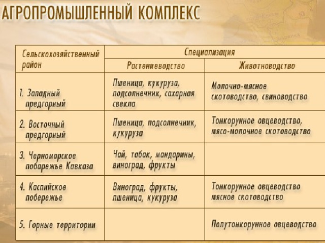 Отрасли специализации хозяйства Европейского Юга