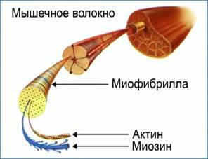 Некоторые клетки организма способны сокращаться и перемещаться, благодаря наличию сократительных белков. К сократительным белкам относятся актин и миозин, которые вызывают сокращение мышц и сокращение мышечной ткани (Рис. 4).