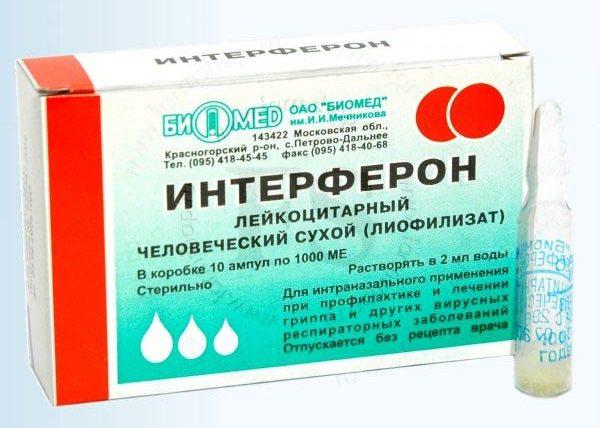 При различных формах простудных заболеваний, интерферон используется в виде капель в нос.