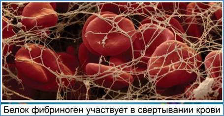 Фибриноген и тромбин предохраняют организм от кровопотери, образуя тромб. Фибриноген является примером белка промежуточного типа, поскольку он имеет фибриллярную структуру, но при этом растворим в воде (Рис. 8).