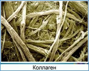 Кроме этого к структурным белкам относятся белки межклеточного матрикса, такие как коллаген и ретикулин. Одним из основных компонентов связок является эластин, кожи – коллаген. Коллаген также входит в состав костей, сухожилий, хряща (Рис. 3).