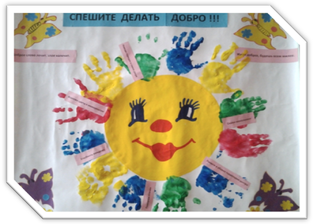 Воспитатель: Как хорошо, вы все улыбались. Хочу вам предложить весь сегодняшний день посвятить добрым делам. Для начала проведем такой урок в нашей группе.