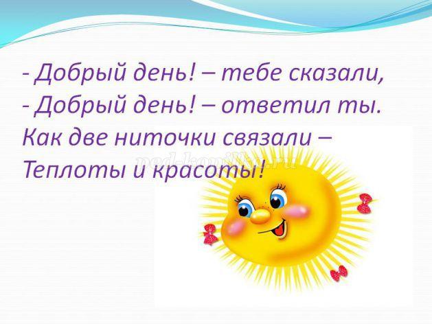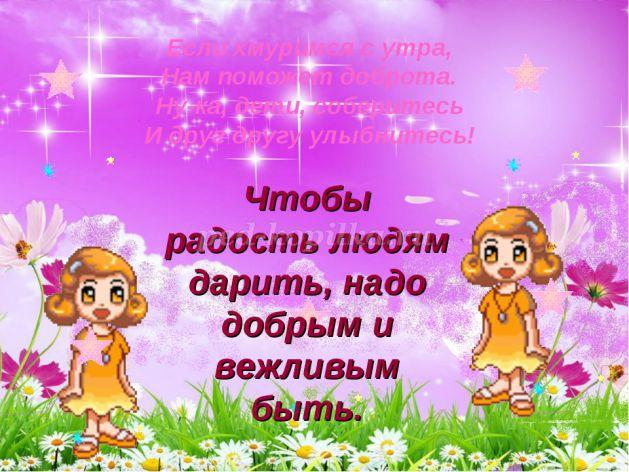 Воспитатель: А что нужно для того, чтобы люди стали добрее, чтобы доброта была повсюду? Как нужно начинать свой день?