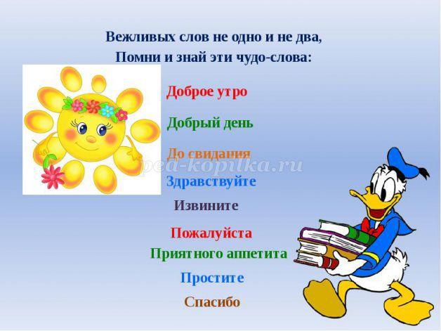 Воспитатель: А какие добрые и вежливые слова вы знаете?
