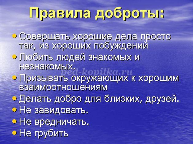 Воспитатель: А давайте вспомним правила доброты?