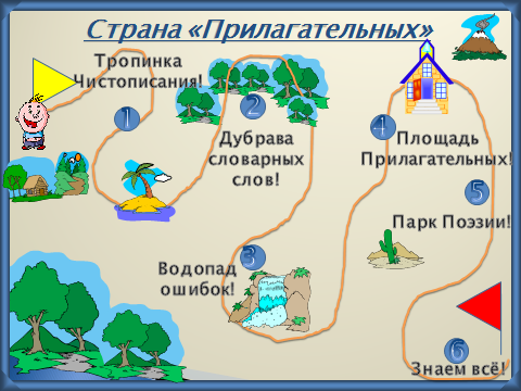 Здравствуйте, садитесь. Сегодня мы продолжаем путешествие по стране «Морфология» в городе «Прилагательное». Но сможем это сделать лишь после того, как выполним задания художницы Имя прилагательное, о которой так красиво написано в стихотворении: