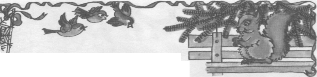 Стоял ясный день. Воздух был свежий, морозный. Мы пошли в парк. Я сел на скамью. Над елью кружила стайка воробьев. Вдруг с ветки прыгнула рыжая белочка. Это наша старая знакомая. Мы зовём её Дарьюшка. Белка села на скамью. Она ждала. Я достал орешки. Дарьюшка мигом схватила их и скрылась.