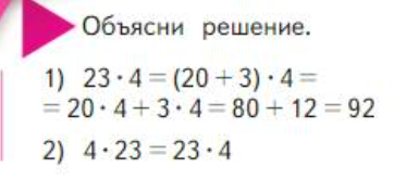 | 1. Закрепление с детьми полученных знаний на уроке. -Посмотрите на доску. 17*5 5* 17 -Что вы заметили в записи этих примеров? -Как мы будем выполнять умножение 5*17? -Какое свойство используем? -Внимание на слайд. Переместительное свойство умножения: a*b=b*a -А для чего нам нужно уметь умножать двузначные числа на однозначные? -Хорошо, давайте решим задачу. -На ваших партах лежат карточки с задачей. -Давайте прочитаем ее вслух. Маша, Таня и Петя пошли за грибами в лес. Каждый из них собрал по 15 грибов. Сколько всего грибов они собрали? Молодцы. | (поменяем местами). (переместительное свойство умножения). (Чтобы решать задачи). (15*3=45) | Регулятивные: осознанно относиться к другому человеку, его мнению. Познавательные: устанавливать существенный признак сравнения, критерии проводимого анализа. Коммуникативные: воспринимать и формулировать суждения, выражать эмоции в соответствии с целями и условиями общения. | Учебная презентация: Слайд 4 (Переместительное свойство умножения). |