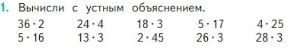 | -Откройте тетради, запишите число и «Классная работа» -Откройте учебники на странице 8 -Давайте составим алгоритм умножения, отталкиваясь от объяснения, которое предложено в учебнике. 1. Заменяю первый множитель суммой разрядных слагаемых. 2. Умножаю каждое слагаемое на число. 3. Складываю полученные результаты. 4. Нахожу результат. -Теперь давайте посмотрим на номер 1. -Давайте вычислим значение 1 примера пользуясь алгоритмом. 36*2= (30+6)*2=30*2+6*2=72 -Хорошо, давайте решим остальные примеры у доски. -Не забывайте пользоваться алгоритмом. (по одному вызывает к доске). -Молодцы, теперь выполним задание на странице 9 в тетрадях. Какие ответы у вас получились? -Давайте подведем итог: как умножить двузначное число на однозначное? -А можем ли мы сократить эти записи? -Существует письменная запись вычислений – в столбик. -Посмотрите на доску. -Записываю пример 34*2. 1) Умножаю множитель на число единиц. Пишу под единицами 8. Получаю первое неполное произведение. 2) Умножаю множитель на число десятков. 2*30=60 и прибавляю 8. Ответ – 68. -Теперь давайте решим примеры 35*3, 37*2, 45*2 в столбик. - Что у вас получилось? -Молодцы. | (Составляют алгоритм вместе с учителем) (решают примеры у доски вместе с учителем). (Сверяют ответы 84, 76, 90, 100). (Двузначное число запишем в виде суммы разрядных слагаемых и воспользуемся правилом умножения суммы на число.) (70, 74, 90). | Познавательные: выявление причинно-следственных связей. Коммуникативные: принимать цель совместной деятельности, коллективно строить действия по её достижению. | Учебник (страница 8)