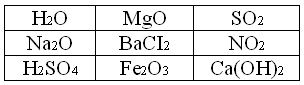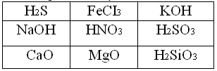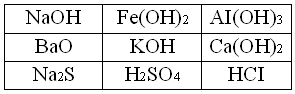 Ca3(PO4)2; H3PO4; Ca(OH)2; Na2SiO3; KOH; BaO; AI2(SO4)3; Fe(OH)2; HCI; BaSO4; SO2; NaOH; Na2CO3; HNO2; Fe2O3; H2S; Cu(OH)2.