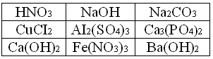 Na2CO3; K2SO4; AI(OH)CI; NaHCO3; Ba(NO3)2; Ca(HCO3)2; K3PO4; Ca(OH)CI; KH2PO4.