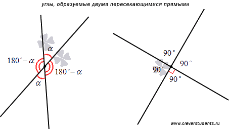 Пересечении прямых образуется 4 угла не считая развёрнутых с общий вершиной.