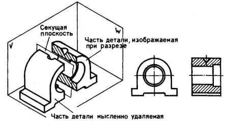 в) профильные разрезы, если секущая плоскость перпендикулярна профильной плоскости проекций.