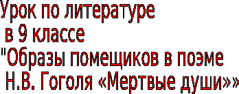 Тема:«Образы помещиков в поэме Н.В. Гоголя «Мертвые души»»