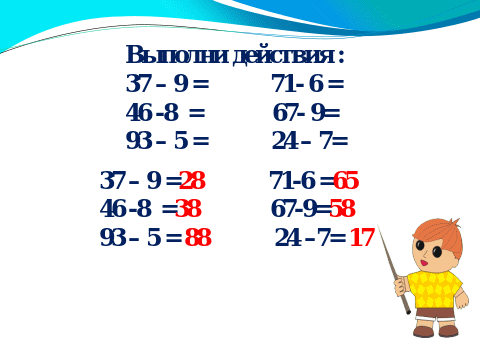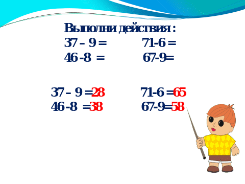 по теме «Устные приёмы вычитания вида 35 – 7.»