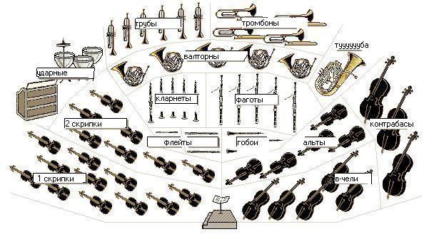 Учитель: В каком порядке рассаживаются оркестранты, мы сейчас увидим на схеме?