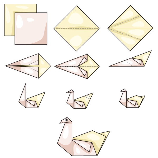 | Попробуйте дома сделать с родителями оригами лебедя по схеме |