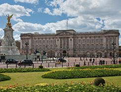 | | Букингемский дворец – официальная резиденция королевы Елизаветы. Он находится рядом с Грин-парком. Когда королева внутри, над Букингемским дворцом развевается королевский штандарт.