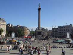 | | Трафальгарская площадь находится в центре Лондона. Она была названа в честь победы в Трафальгарской битве. В центре площади стоит памятник адмиралу Нельсону с 4 львами у его основания.