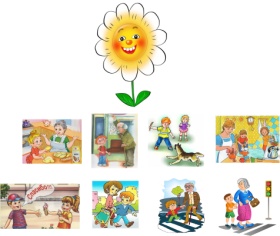 - Интересно, что же в ней? Давайте, посмотрим? (В коробке картинки). Здесь картинки и два цветочка. Посмотрите на цветы: один цветок… какой? (добрый, радостный), а другой? (сердитый). Сейчас я каждому дам картинку, вы посмотрите и подумаете, хороший это поступок или плохой. Картинку с хорошим поступком вы положите к цветочку…. какому? (доброму) А почему? А с плохим поступком? (сердитому). Договорились? Не забывайте объяснять свой выбор. (Дети получают картинки с изображениями хороших и плохих поступков, помещают их к соответствующим цветочкам и объясняют свой выбор).