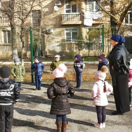 Ведущая: Молодцы, дети. Съел Расул орехи, перешел речку и оказался в поле, где росло много красивых цветов. Но от жаркого солнца эти цветы завяли, даже не распустившись. Тогда Расул решил полить эти цветы водой и перед ним предстало красивое зрелище: он увидел как медленно и красиво распускаются цветы. Давайте, дети, представим себе, что наши руки – это распускающиеся бутоны. (Дети удобно располагаются на коврике и выполняют упражнение «Замедленные движения»).