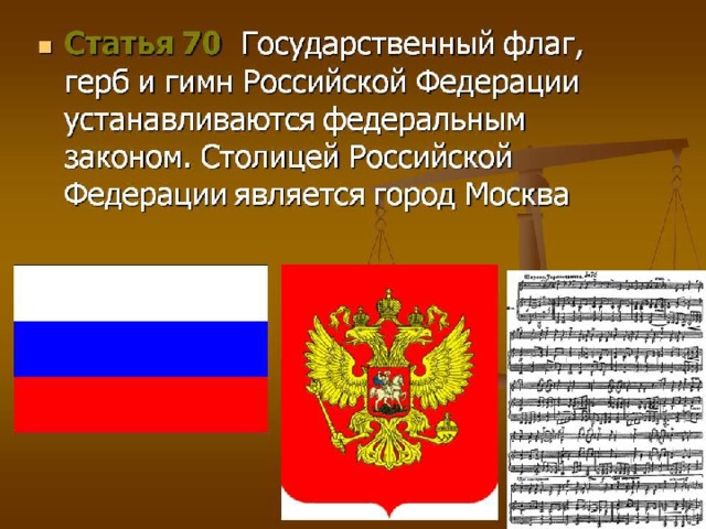 Продолжать знакомство с Российскими праздниками, сделать акцент на вопросах темы, дать определение Конституции, Герба, Флага, Гимна, способствующих воспитанию патриотизма. Содействовать развитию познавательной активности, формировать гуманизм, всесторонне развитую личность.